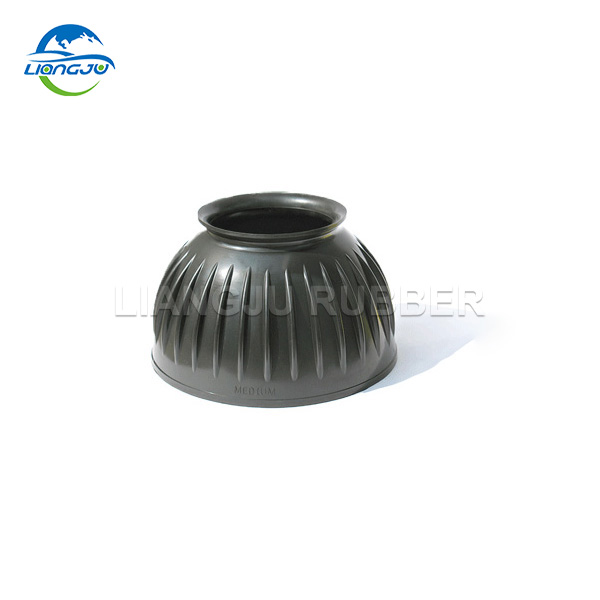 మేము అన్ని రబ్బర్ హార్స్ బెల్ బూట్ల కోసం మంచి నాణ్యత గల రబ్బరు మెటీరియల్ని ఎంచుకుంటాము, ఆచరణాత్మకంగా ఏదైనా సేవా పరిస్థితిని సంతృప్తి పరచడానికి మేము క్రింది ప్రామాణిక రబ్బరు పదార్థాలను డ్యూరోమీటర్ (షోర్ A) కాఠిన్యం పరిధిలో అందిస్తాము. ఈ పదార్థాలు సర్వసాధారణం, కానీ మేము చాలా రబ్బరు ఎలాస్టోమర్ రకాల అనుకూల సమ్మేళనాలను అందించే సామర్థ్యాన్ని అందిస్తాము: సహజ రబ్బరు, EPDM, సిలికాన్ మరియు PVC